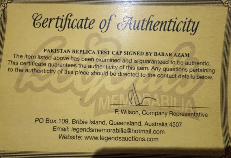 Babar Azam Personally Signed Replica Cricket Test Cap.The Item Is Accompanied By A Certificate Of Authenticity.
