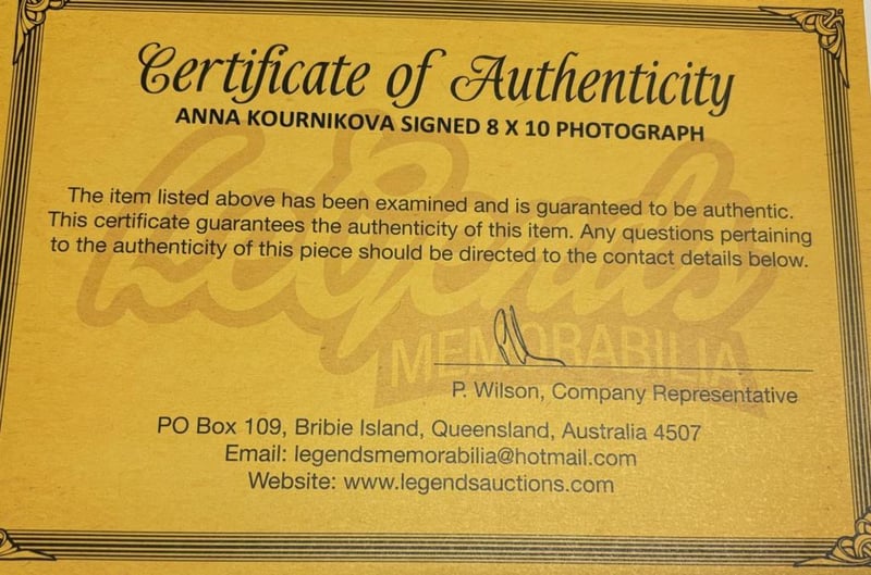 Anna Kournakova Personally Signed 8 X 10 Photo. The Item Is Accompanied By A Certificate Of Authenticity.
