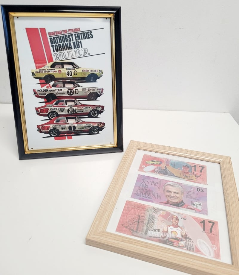 BATHURST ENTRIES TORANA XU1 FRAMED PRINT AND CAR MONEY ART FRAMED