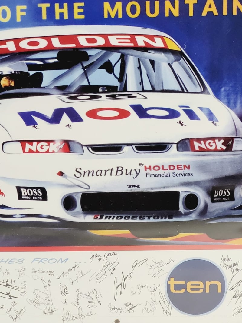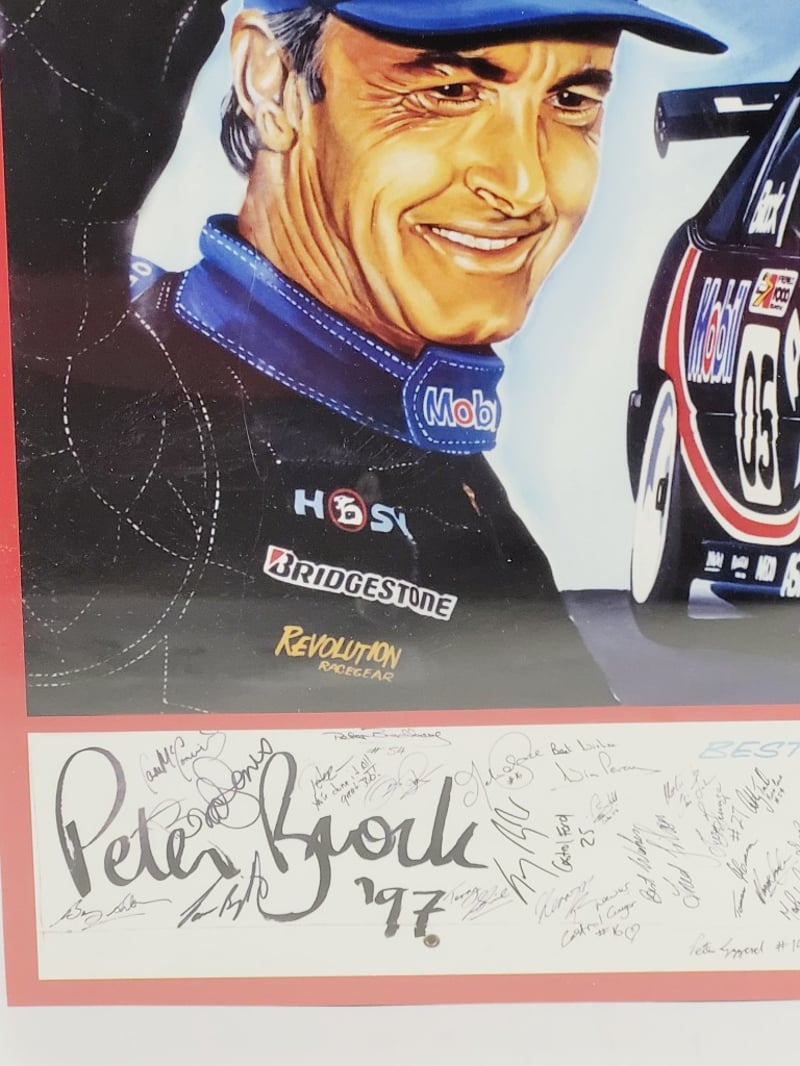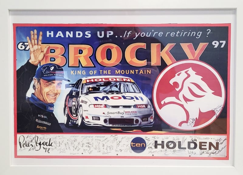 PETER BROCK SIGNED AND FRAMED IMAGE "HANDS UP IF YOU'RE RETIRING .. BROCKY"