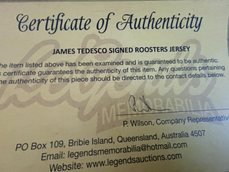 JAMES TEDESCO SIGNED ROOSTERS JERSEY