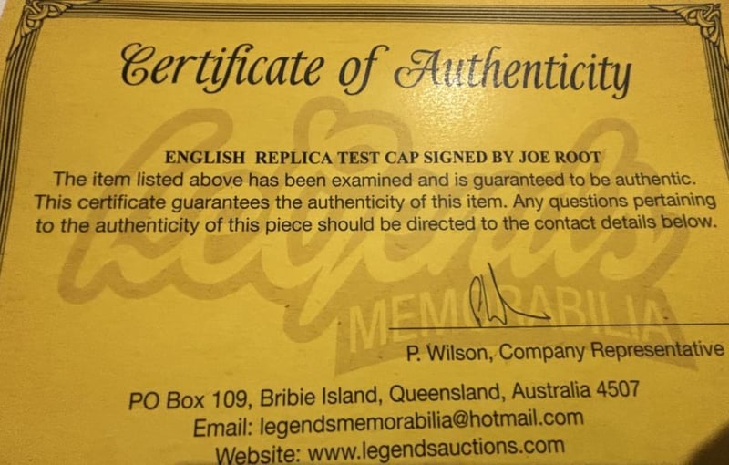 Joe Root Personally Signed Replica Test Match Cricket Cap.The Item Is Accompanied By A Certificate Of Authenticity.