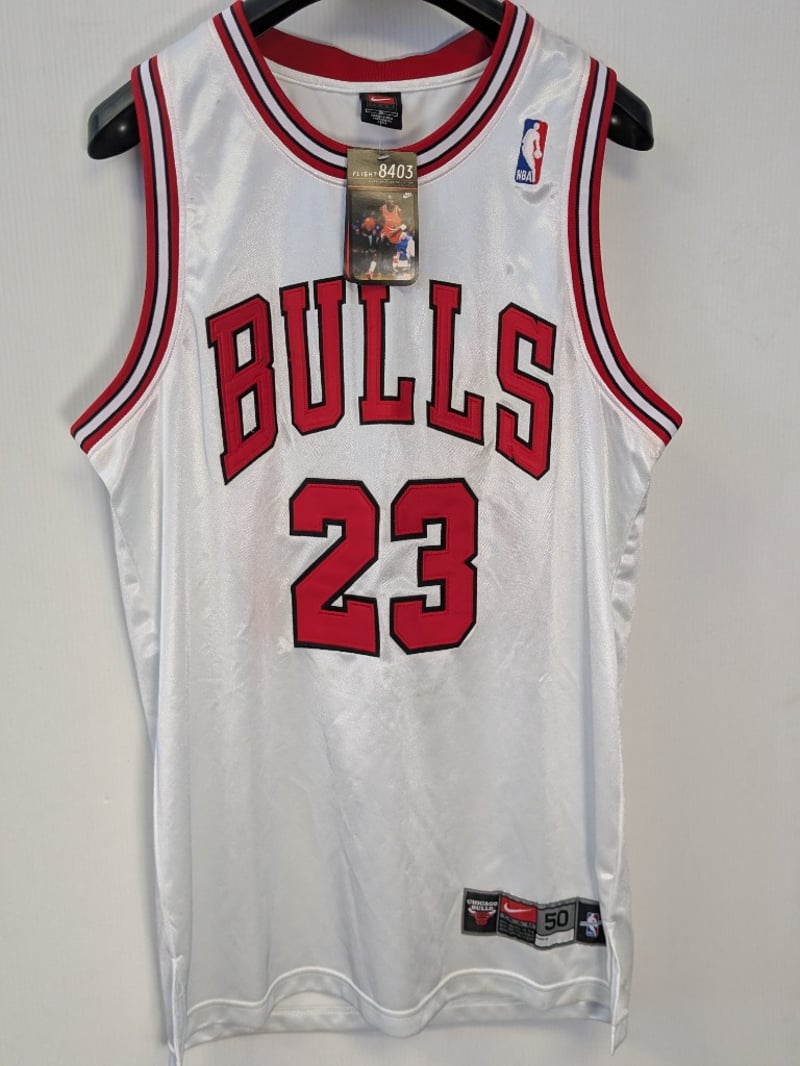 MICHAEL JORDON SIGNED NIKE NBA CHICAGO BULLS MICHAEL JORDAN JERSEY IN WHITE, SIZE 50