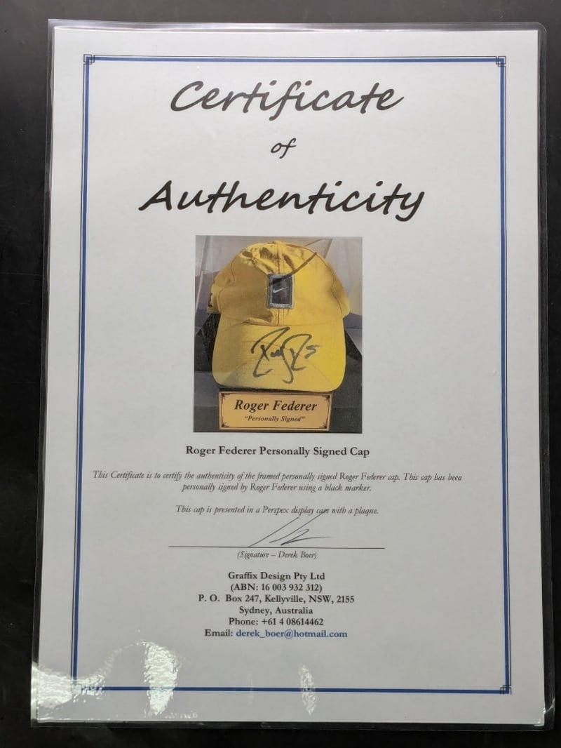 HAND SIGNED BY ROGER FEDERER USING A BLACK MARKER