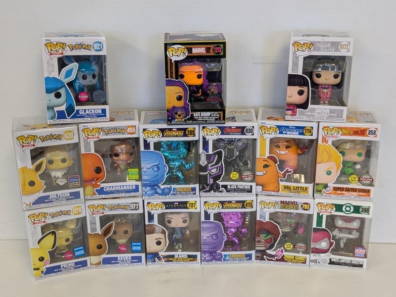 POP VINYLS X 15 INCLUDES JOLTEON DIAMOND COLLECTION, THANOS, BLACK PANTHER AND MORE