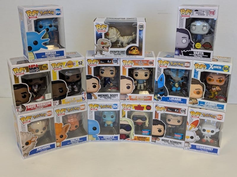 POP VINYLS X 15 INCLUDES LEBRON JAMES, ATROCITAPTOR, MOSE SCHRUTE AND MORE