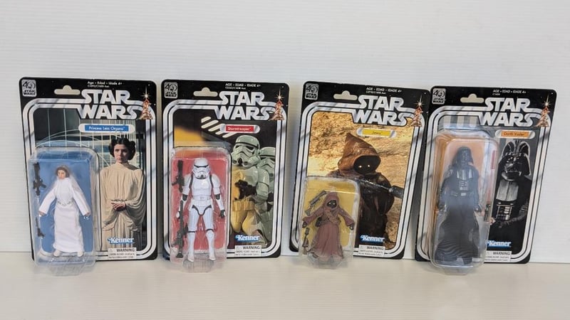 STAR WARS BLACK SERIES 40TH ANNIVERSARY 6-INCH ACTION FIGURES INCLUDES PRINCESS LEIA ORGANA, STORM TROOPER, JAWA AND DARTH VADERPackaging Has Some ImperfectionsCondition: Fair - Refer To Images232856+12