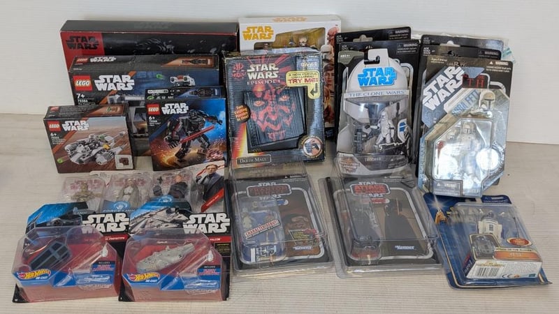 STAR WARS, INCLUDES LEGO SET 75368 DARTH VADER, HOT WHEELS MILLENNIUM FALCON, STAR WARS: THE VINTAGE COLLECTION SENATE GUARD ACTION FIGURE AND MORE