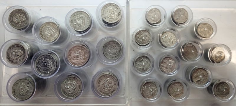 Provenance: Includes Australian Post - 45 Silver Sixpences And Shillings, Approx Total Over 2012G , 50% Silver