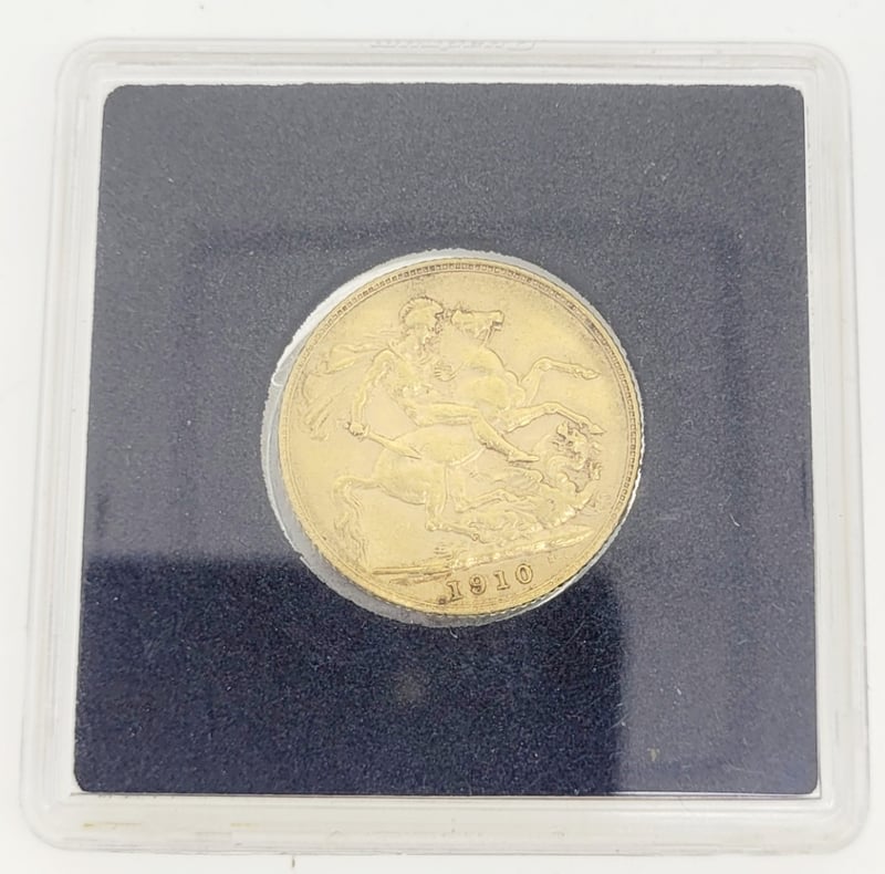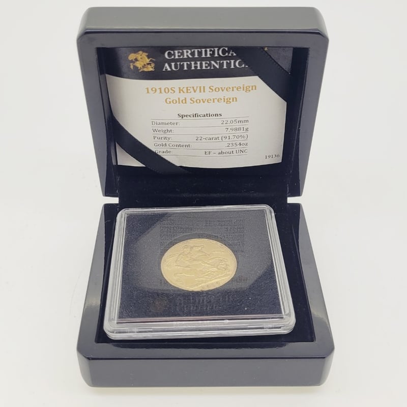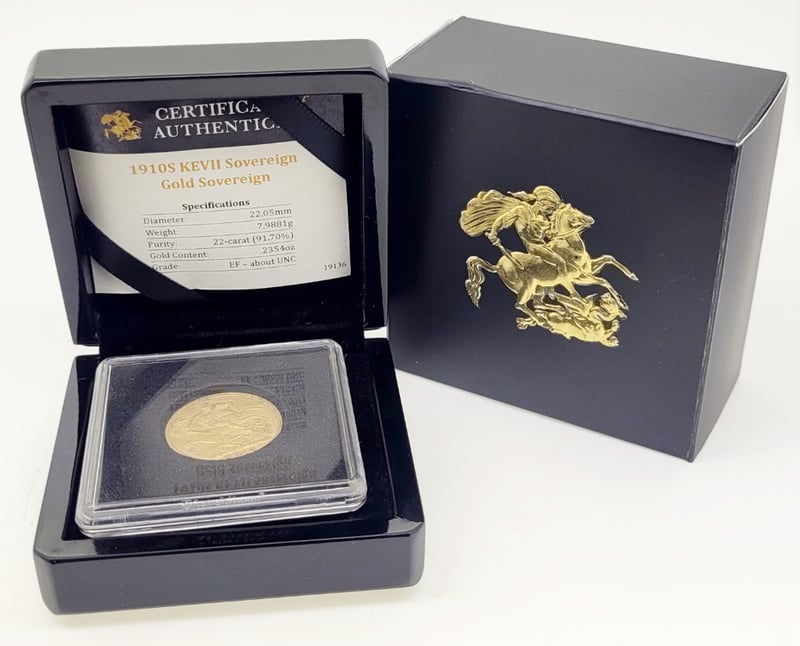 1910S SOVEREIGN, D.C.S. OBVERSE , VERY HIGH GRADE IN PRESENTATION BOX , EF - ABOUT UNC