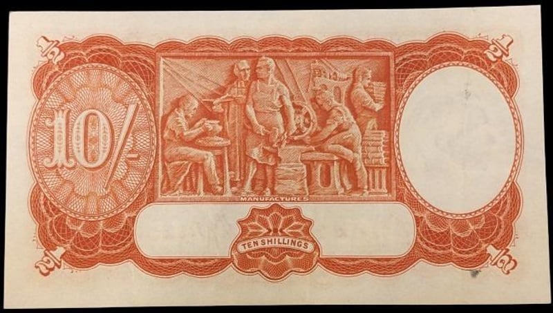 1936 AUSTRALIAN SHEEHAN/RIDDLE TEN SHILLINGS BANK NOTE D72 858296Condition: AuncProvenance: Renniks Catalogue Value: $7,500488435+43
