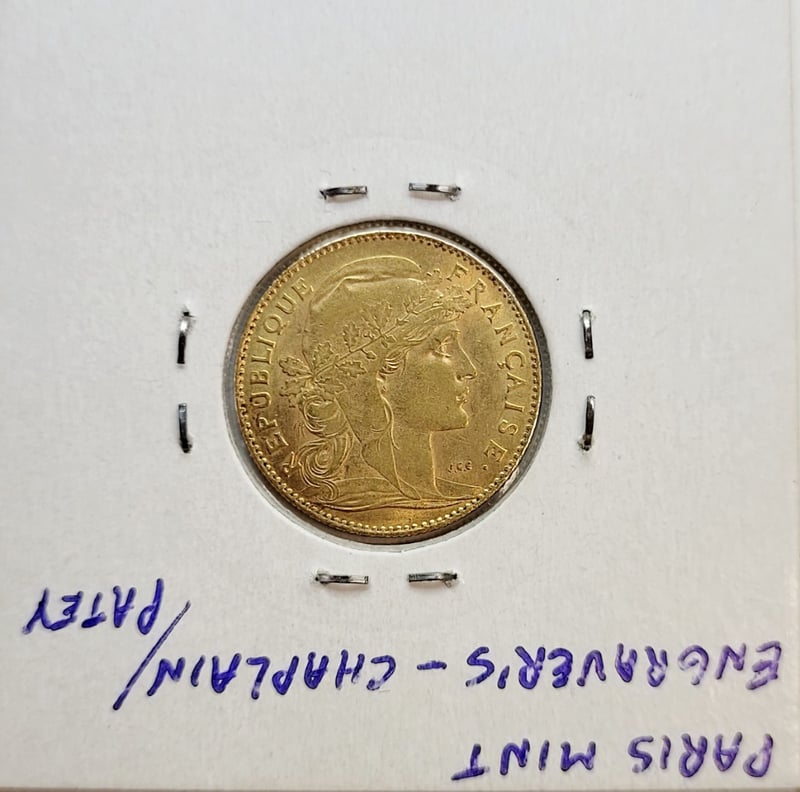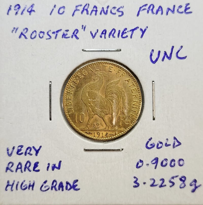 1914 FRENCH "ROOSTER VARIETY" 10 FRANCS GOLD COIN , 0.900/3.2258G , PARIS MINTCondition: Unc488435+19