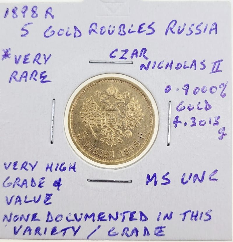1898R CZAR NICHOLAS II RUSSIAN 5 ROUBLES GOLD COIN , 0.900/4.3013G