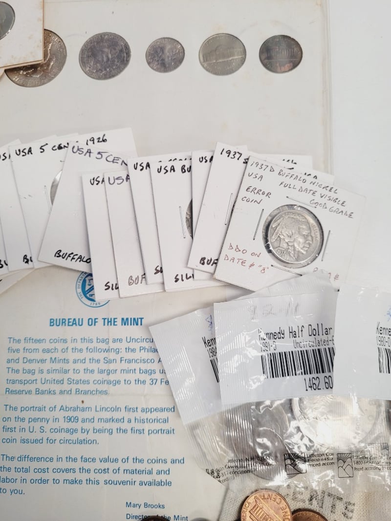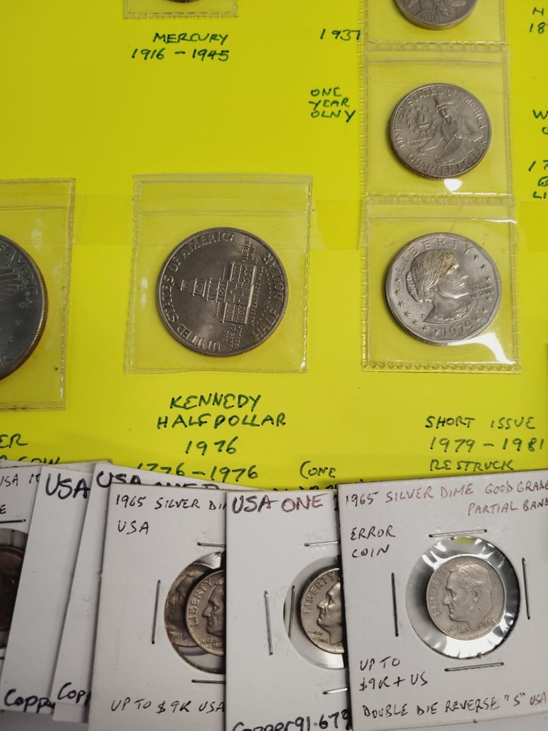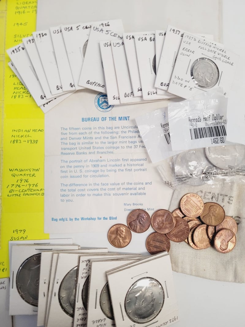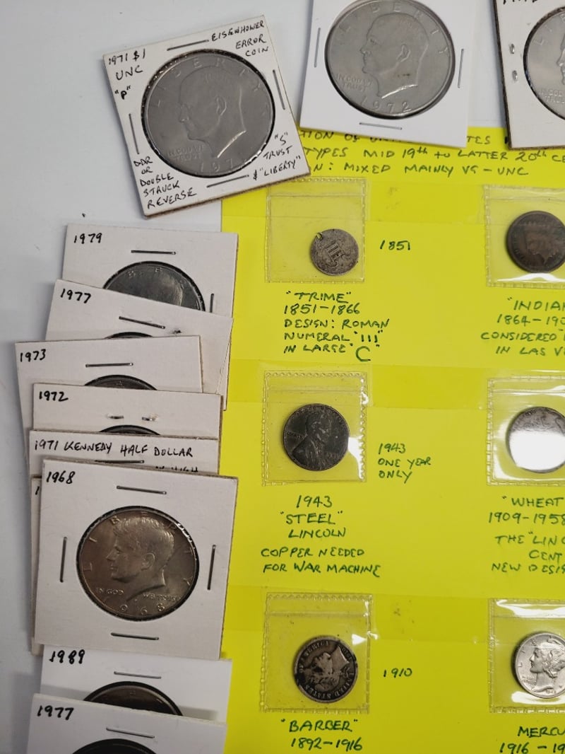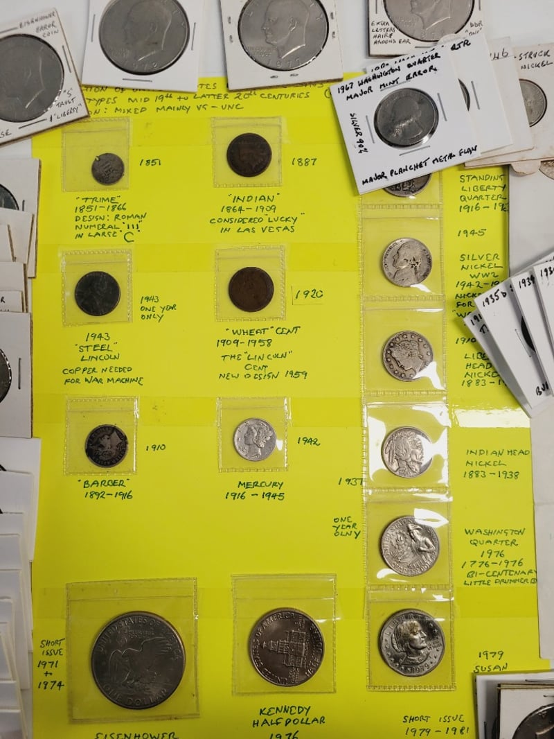 1851 Trime , 1887 Indian Head Penny , 1920 Standing Liberty Qtr , Barber Dimes 1910, Mercury Dime 1942 , Buffalo Nickel