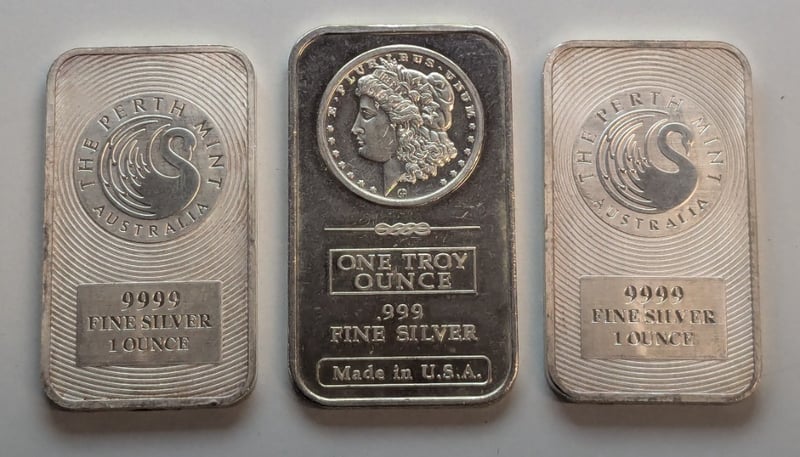 Provenance: Incl. 2 X Perth Mint Scarce 1 Oz Proof 9999 Fine Silver Ingot/Bar And 1 X Usa Scarce 1 Oz Proof 999 Fine Silver Ingot/Bar.