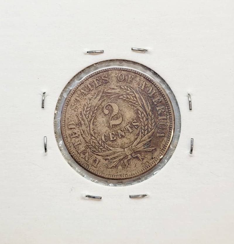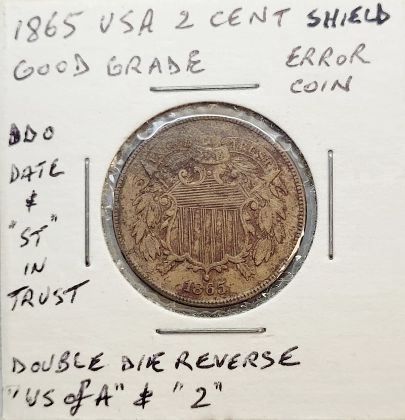 - 1865 2C Shield Double Die Reverse On " Us Of A" And "2" , High Grade