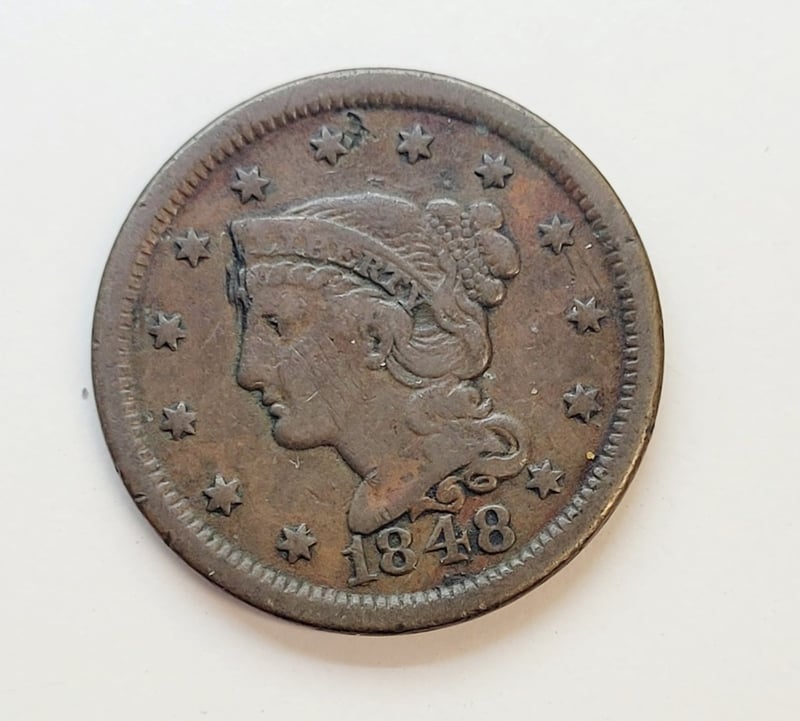 - 1848 Large Cent , Braided Hair Type ( Superior Grade For Type And Age )