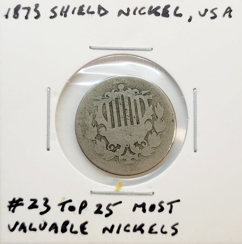 - 1873 Shield Nickel Number 23 Top Most Valuable Nickels , Possible " Closed 3 " Variety , Good Grade