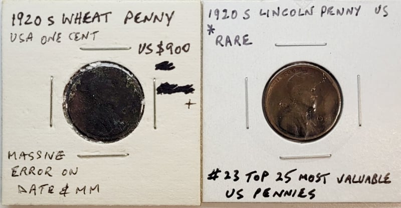 1920S Error Coin - Number 23 , Top 25 Most Valuable Us Penny'S, Catalogue Value Up To $999 ( Without Error ) Major Mint Error On Date And Mint Mark
