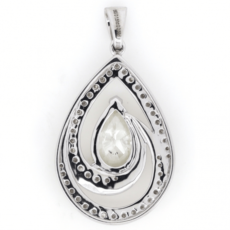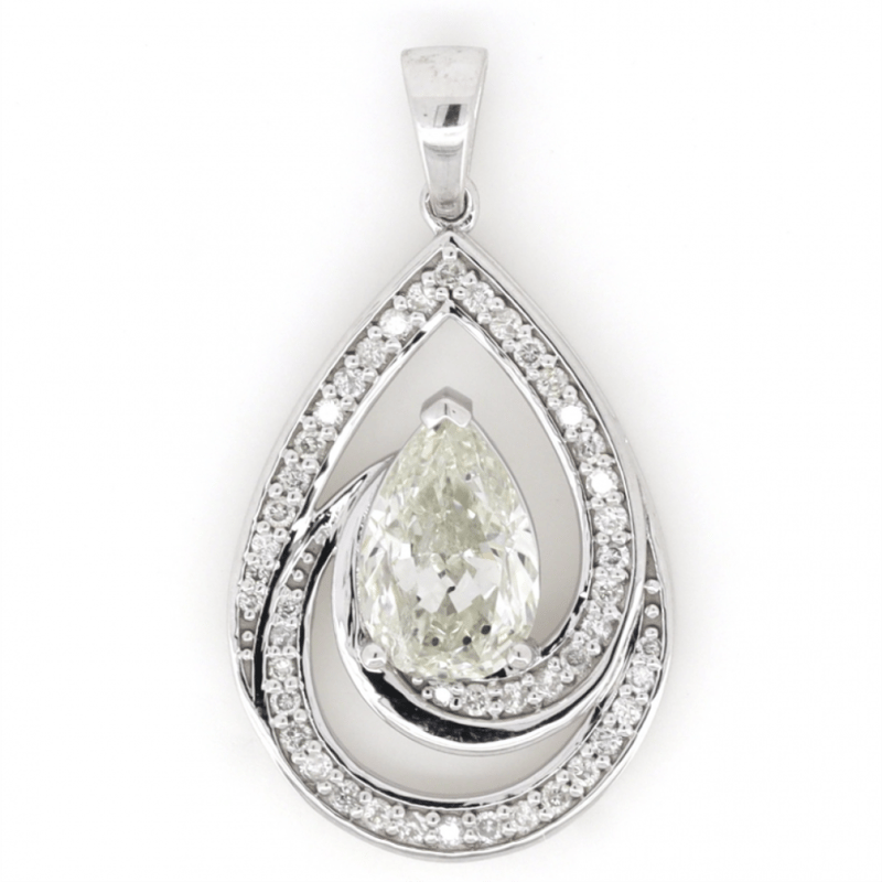 The Centre Features, One Pear Modified Brilliant Cut, Diamonds (1.51Ct, H-I Colour, Si2-P1 Clarity), Claw/Basket Set. Surrounding The Centre Are, 46 Round Brilliant Cut, Diamonds (0.258Ct Tdw, G-H Colour, Si1-Si2 Clarity), Micro-Bead Set.