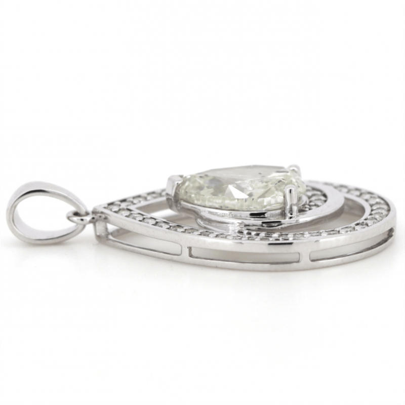 14K WHITE GOLD AND DIAMOND, DROP PENDANT.