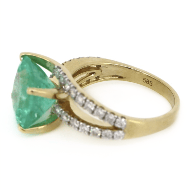 14K YELLOW GOLD, 4.43CT COLOMBIAN EMERALD AND DIAMOND, SPLIT BAND RING.