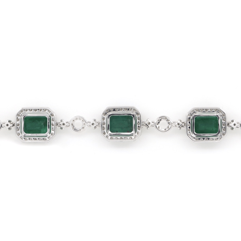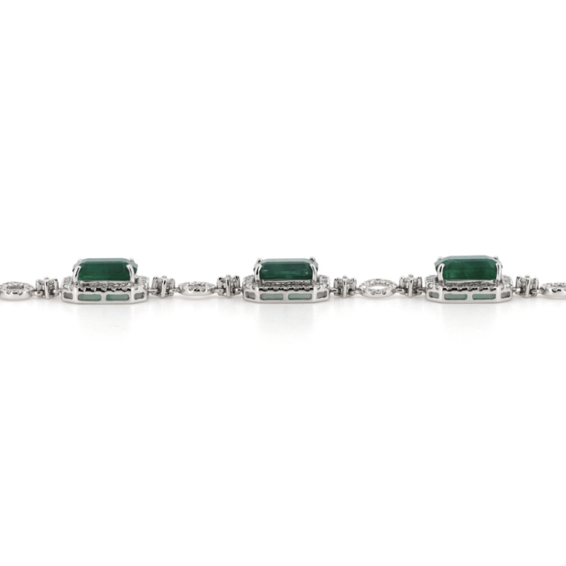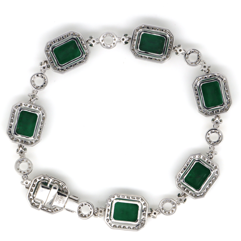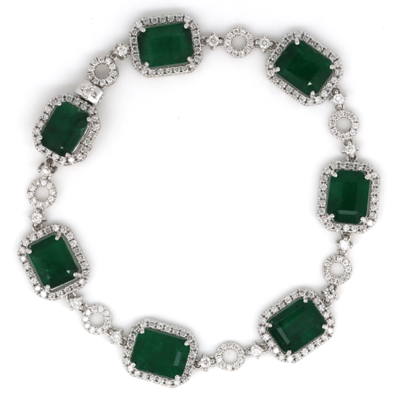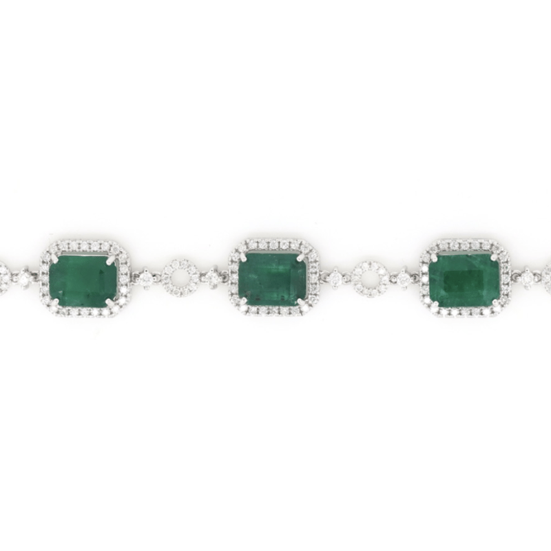The Design Features, 7 Emerald Cut, Deep Moderate Green, Emeralds (16.05Ct Tsw, Heavily Included), 4 Claw Set. Accompanying The Design Are, 250 Round Brilliant Cut, Diamonds (1.45Ct Tdw, G-H Colour, Si1-Si2 Clarity), Bead Set. The Bracelet Measures 19Cm And Features A Concealed Box Snap Clasp With Fold Under Safety Clip.