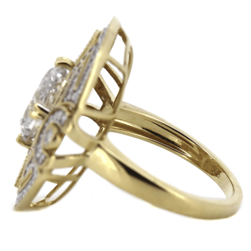 14K YELLOW GOLD AND DIAMOND, ART DECO INSPIRED RING.