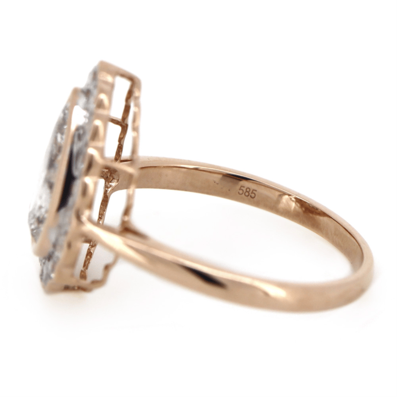 14K ROSE GOLD, SALT AND PEPPER DIAMOND, HALO RING.