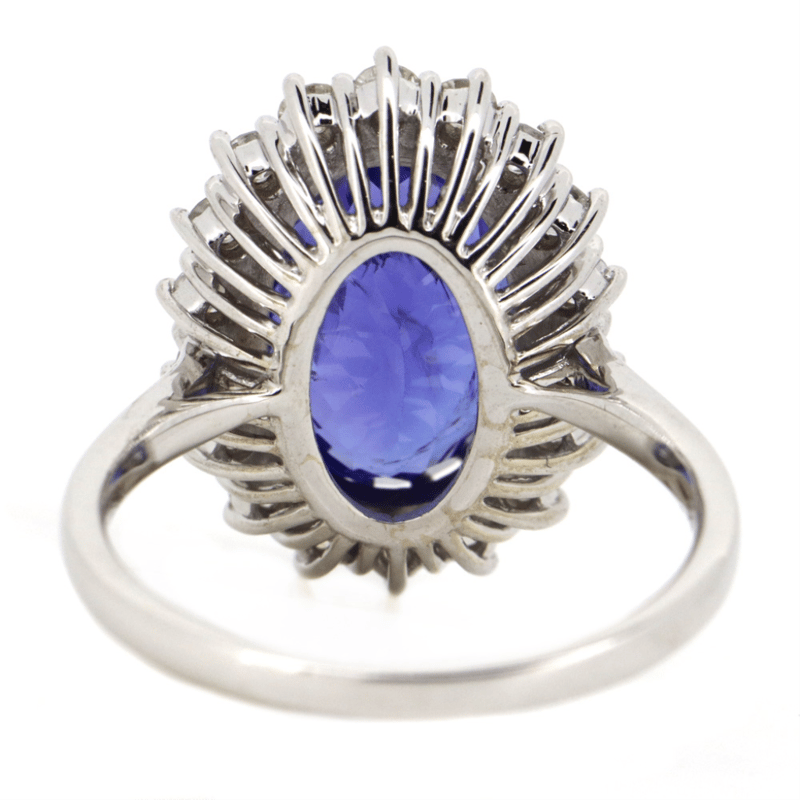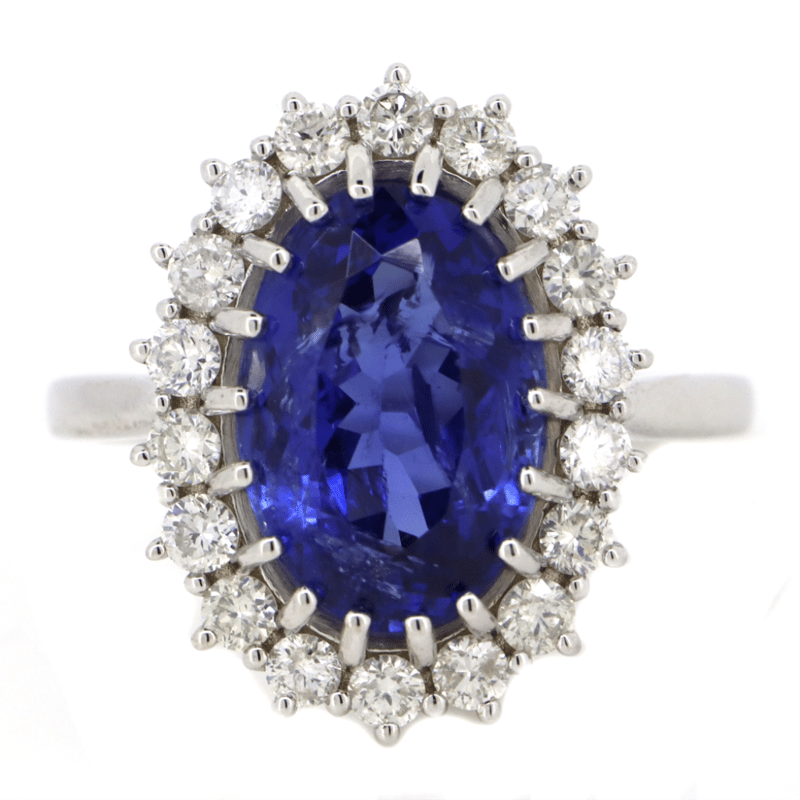 The Centre Features, One Oval Cut, Tanzanite (5.48Ct, Moderate-Heavy Surface Reaching Natural Inclusions), Multi-Claw Set. Surrounding The Centre In A Halo Are, 18 Round Brilliant Cut, Diamonds (0.79Ct Tdw, H-K Colour, Si-I2 Clarity), Claw Set. Ring Size P.