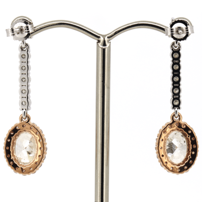 14K WHITE/ROSE GOLD AND DIAMOND, DROP EARRINGS.