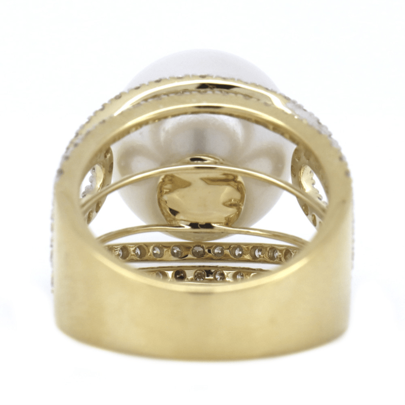 The Centre Features, One Near Round, White With Silver Overtones, Cultured South Sea Pearl (20.73Ct/15.00Mm Size, Aa Lustre), Cap Set. Decorating The Band Are, 118 Round Brilliant Cut, Diamonds (1.57Ct Tsw, G-H Colour, Si1-Si2 Clarity), Pip-Claw Set. Ring Size N 1/2.