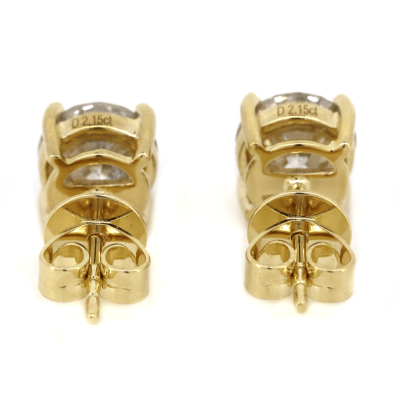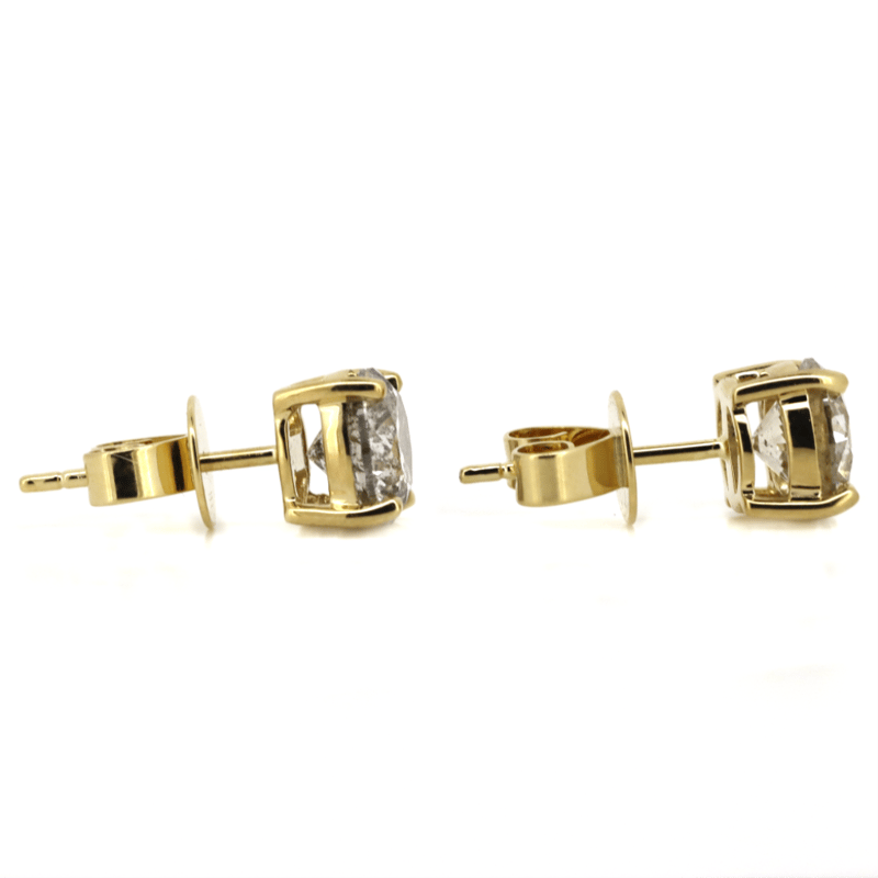 The Centres Feature, 2 Round Brilliant Cut, Diamonds (2.15Ct Tdw, H-I Colour, I1-2 Clarity), 4 Claw Set. Earrings Have Post Backs And Come With 14K Yellow Gold Backs.
