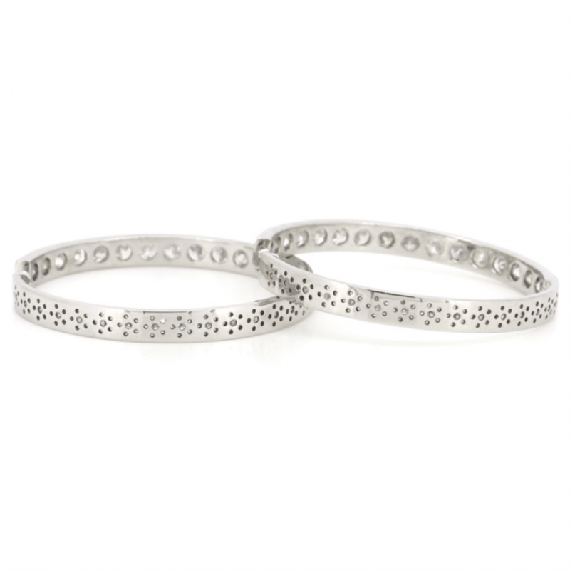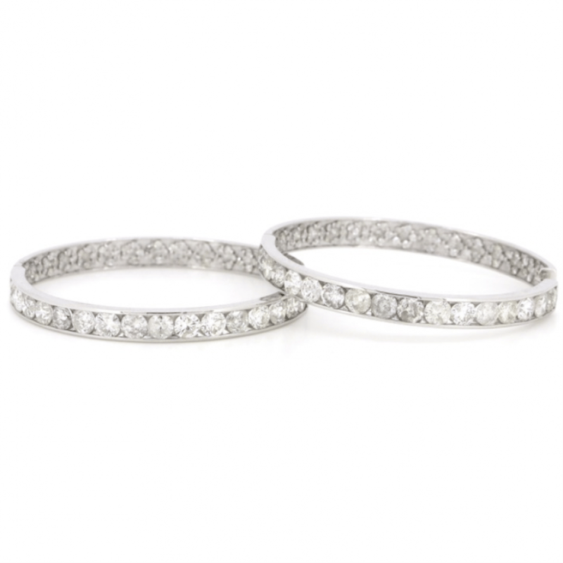 14K WHITE GOLD, 6.67CT TDW DIAMOND, HOOP EARRINGS.