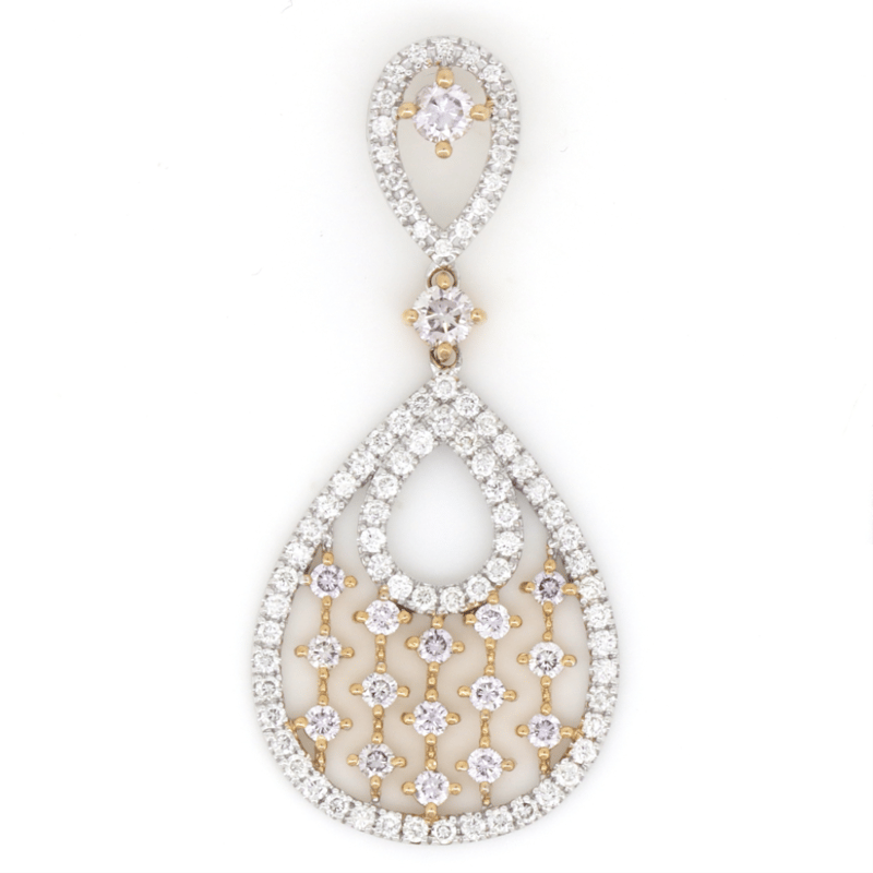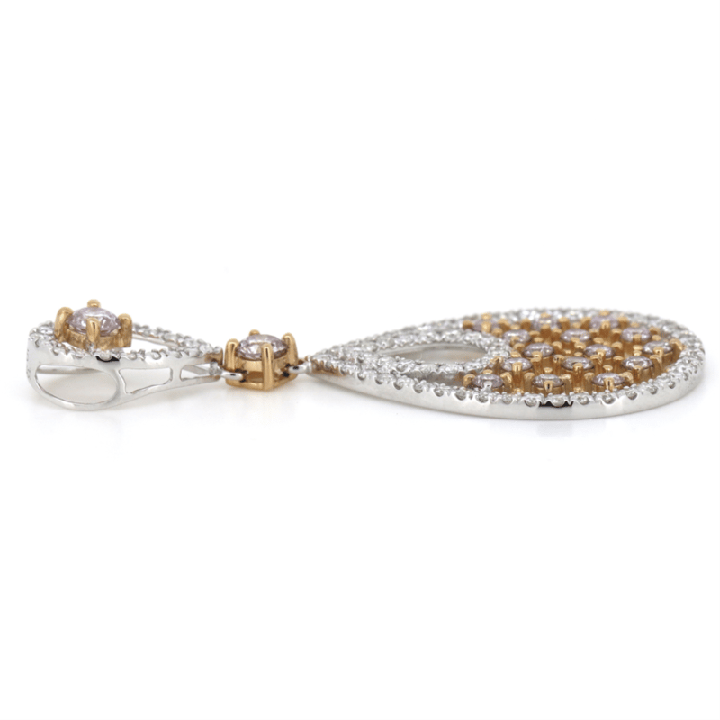 14K WHITE/ROSE GOLD, PINK DIAMOND AND DIAMOND, DROP PENDANT.