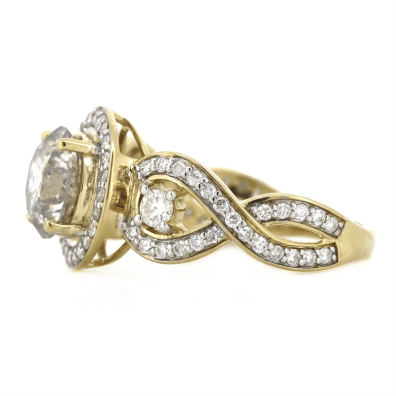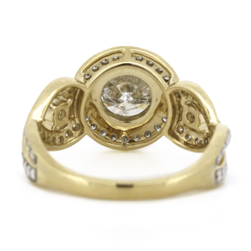 14K YELLOW GOLD AND DIAMOND, HALO TRILOGY RING.