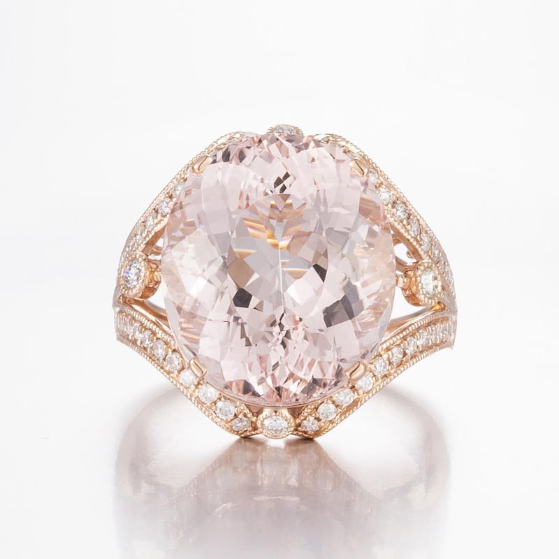 14CT ROSE GOLD MORGANITE AND DIAMOND COCKTAIL RING