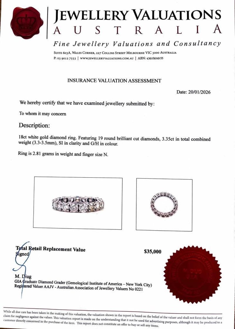 This valuation has been conducted by an independent third-party professional. The valuation amount is an assessment by the issuing valuer and does not reflect the auction value of the item.