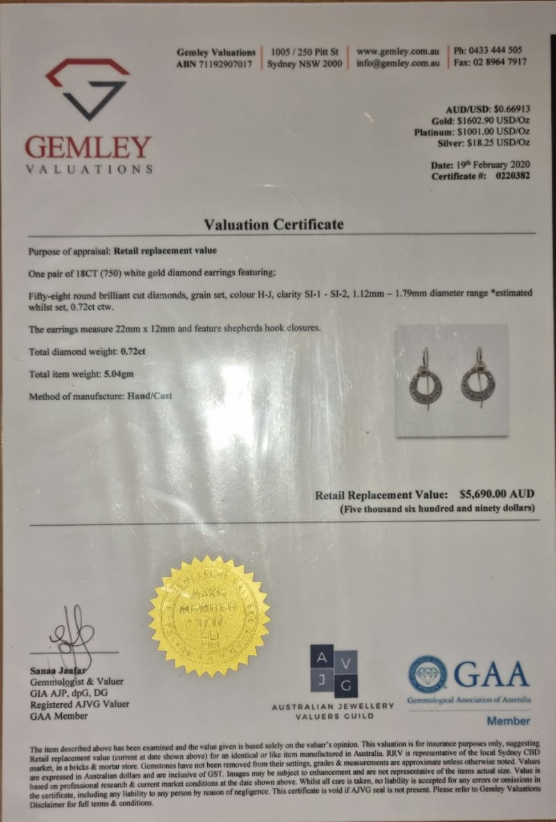 ONE PAIR OF 18CT (750) WHITE GOLD DIAMOND EARRINGS FEATURING;