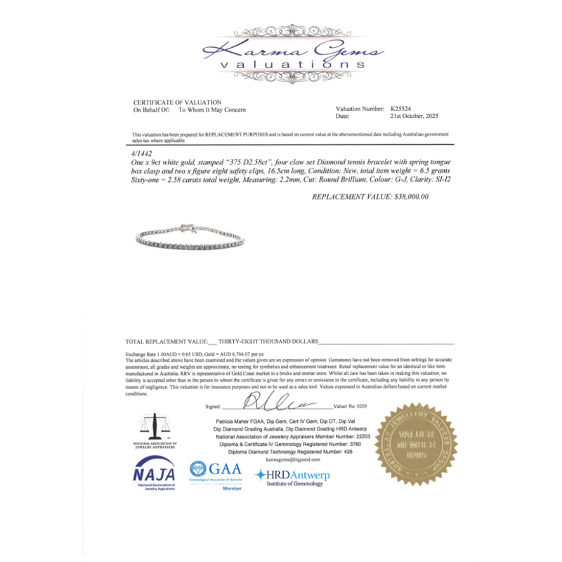 The Design Features, 61 Round Brilliant Cut, Diamonds (2.58Ct Tdw, G-J Colour, Si-I2 Clarity), 4-Claw Set. The Bracelet Has A Box Clasp With Double Figure 8 Clasps. Bracelet Length Is 16.5Cm.