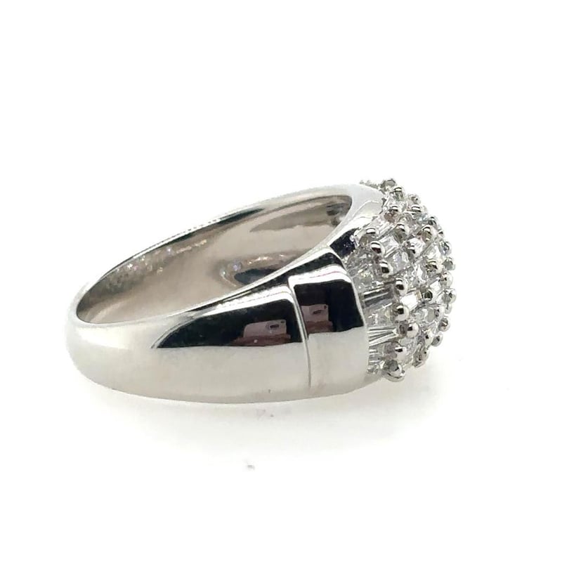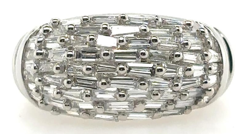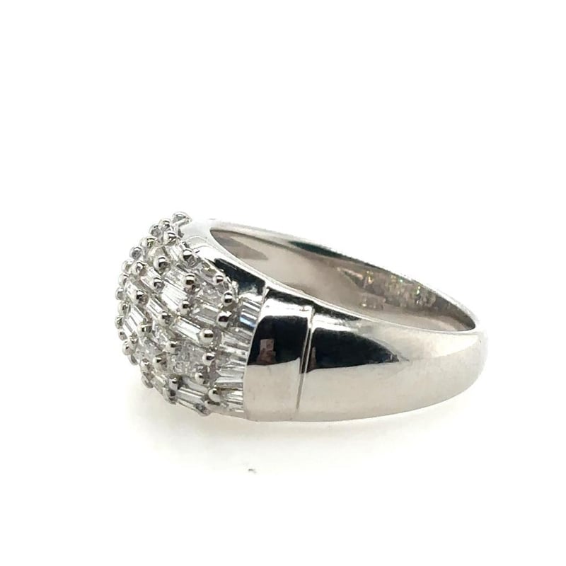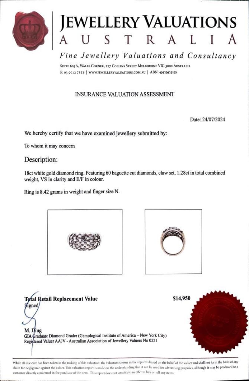 This 18Ct White Gold Ring Features 60 X Baguette Cut Claw Set Diamonds, 1.28 In Total Combined Weight, Vs In Clarity And E-F In Colour.