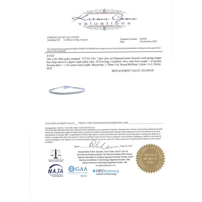The Design Features, 73 Round Brilliant Cut, Diamonds (1.52Ct Tdw, G-J Colour, Si-I2 Clarity), 4 Claw Set. The Bracelet Has A Box Clasp With Double Figure 8 Clasps. Bracelet Length Is 16.5Cm.