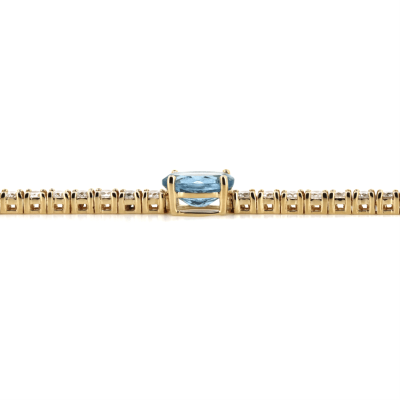 The Design Features, One Oval Faceted Cut, Aquamarine (1.16Ct, Moderate Natural Inclusions), Claw Set. Decorating The Rest Of The Bracelet Are, 62 Round Brilliant Cut, Diamonds (2.66Ct Tdw, G-J Colour, Si-I2 Clarity), 4-Claw Set. The Bracelet Has A Box Clasp With Double Figure 8 Clasps. Bracelet Length Is 17.5Cm.