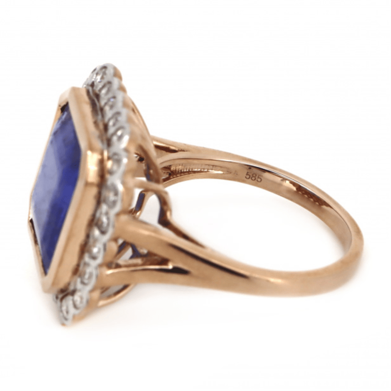 14K ROSE GOLD, 11.19CT TANZANITE AND DIAMOND, STATEMENT RING.