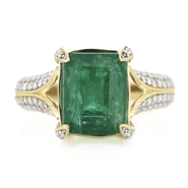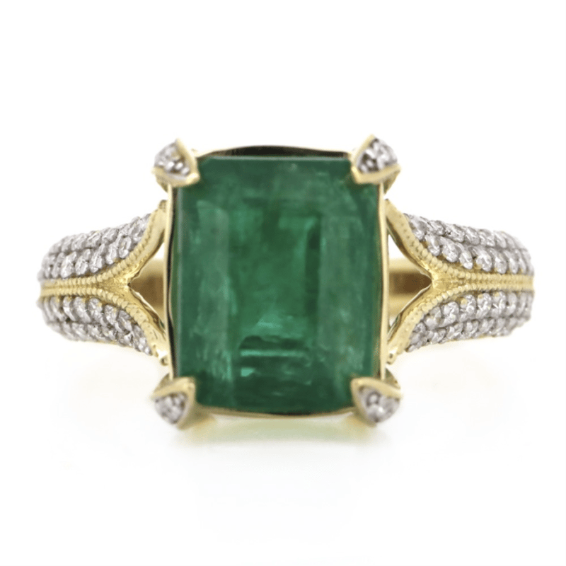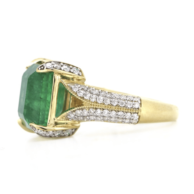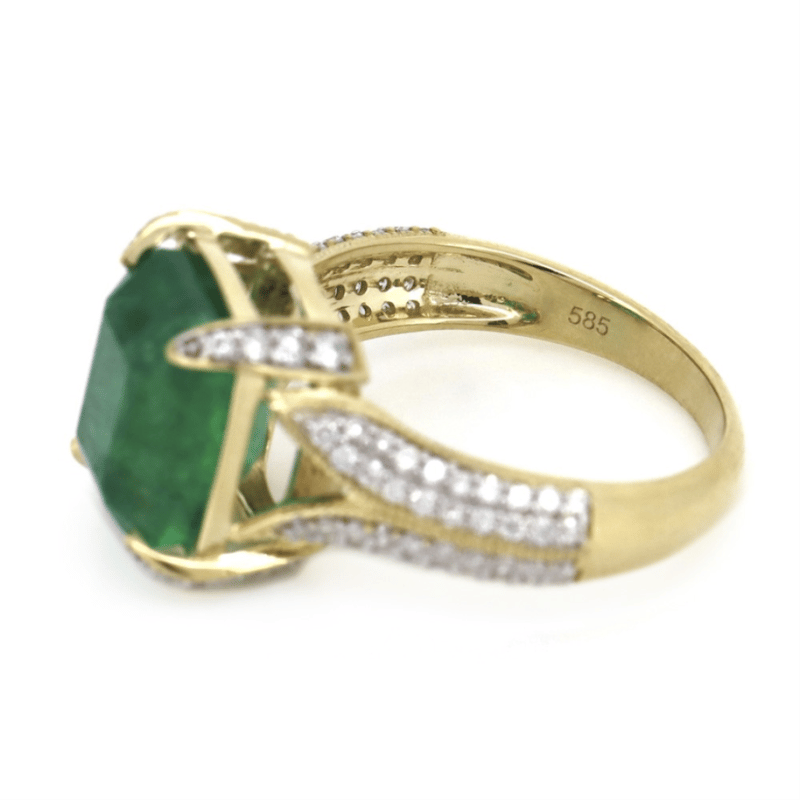 14K YELLOW GOLD, 5.04CT ZAMBIAN EMERALD AND DIAMOND, DRESS RING.