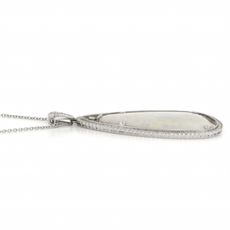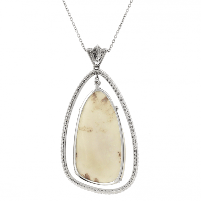 14K WHITE GOLD, 33.18CT COOBER PEDY OPAL AND DIAMOND, STATEMENT NECKLACE.