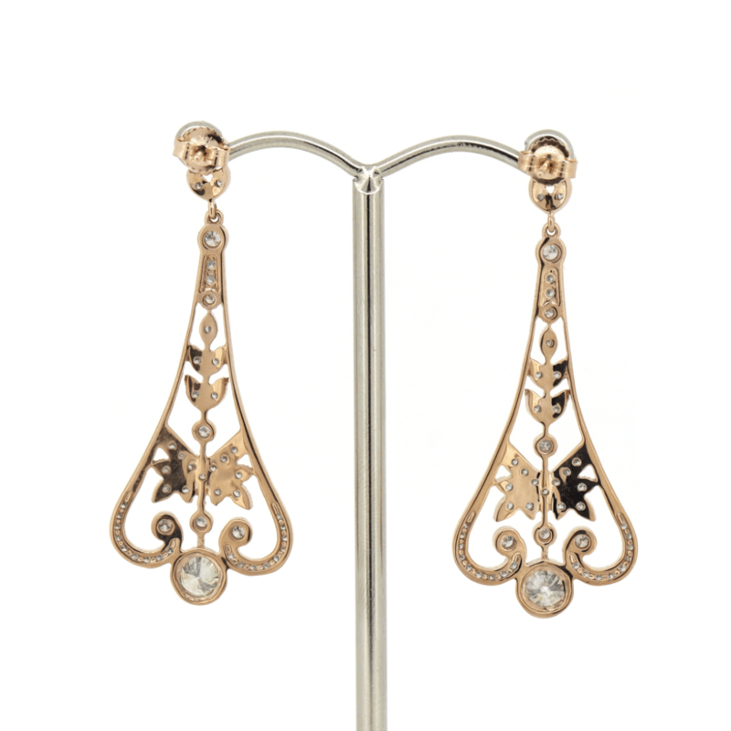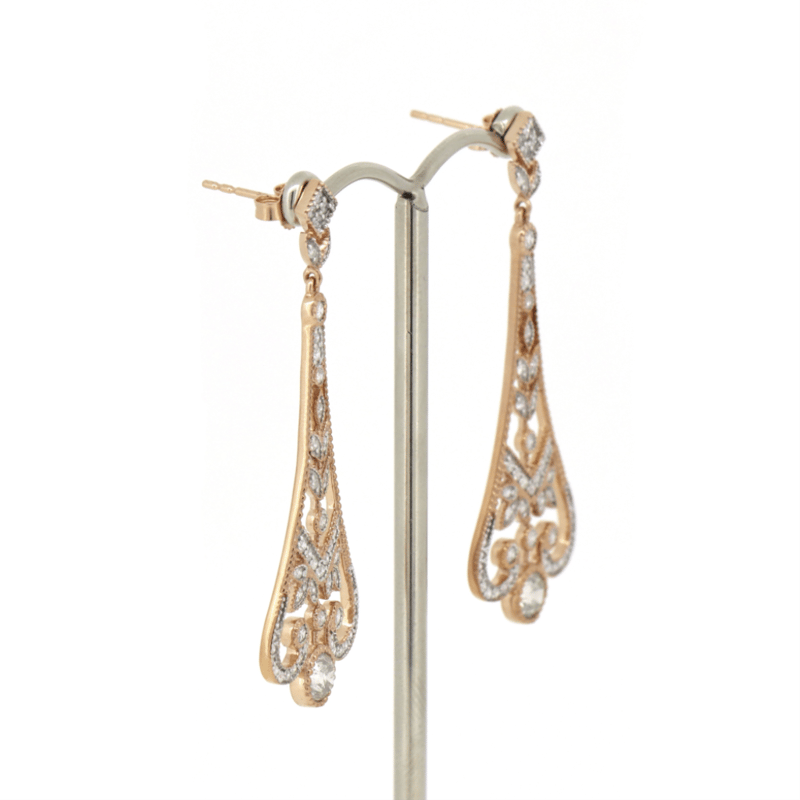 14K ROSE GOLD AND DIAMOND, ART DECO INSPIRED EARRINGS.