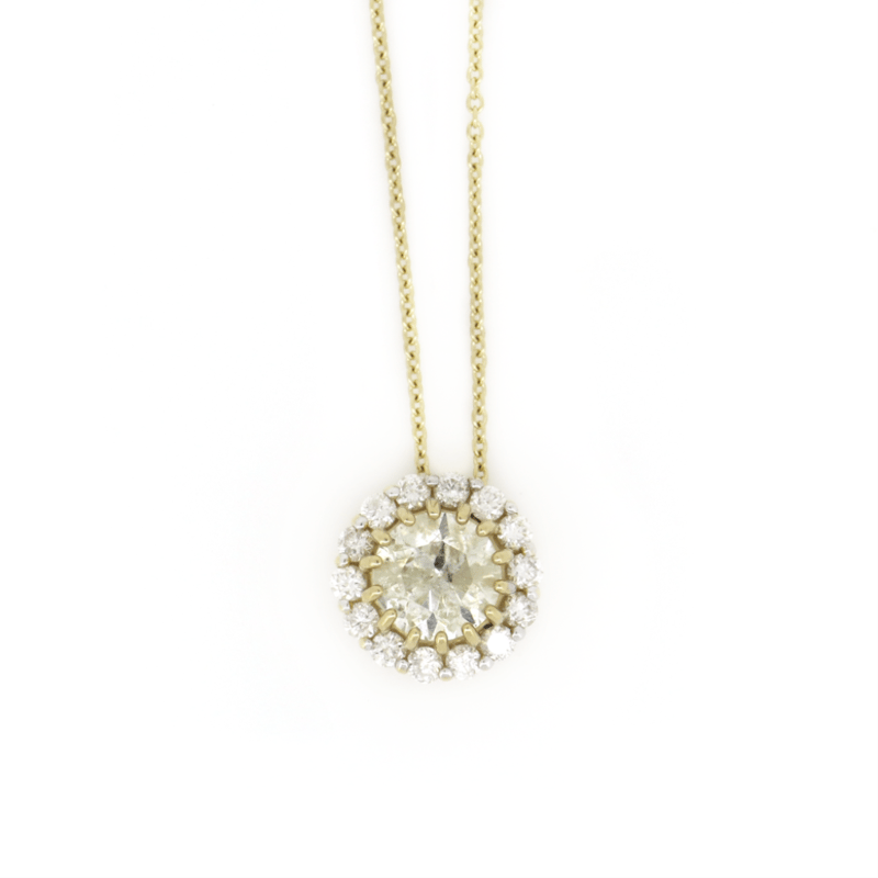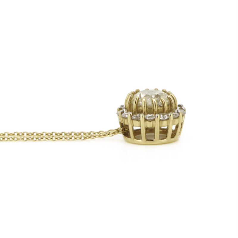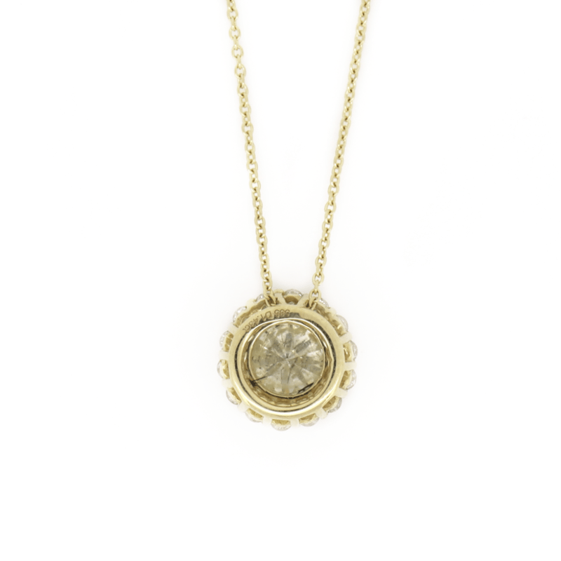 14K YELLOW GOLD AND DIAMOND, HALO NECKLACE.