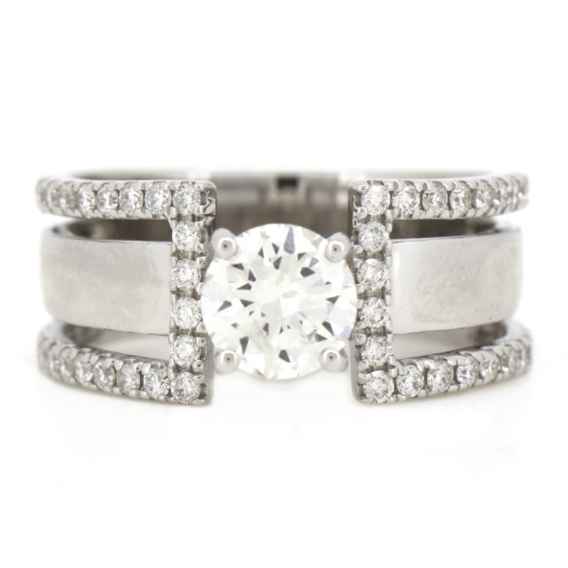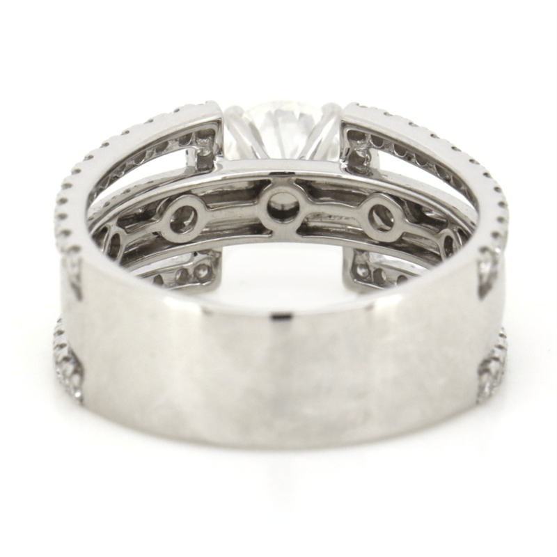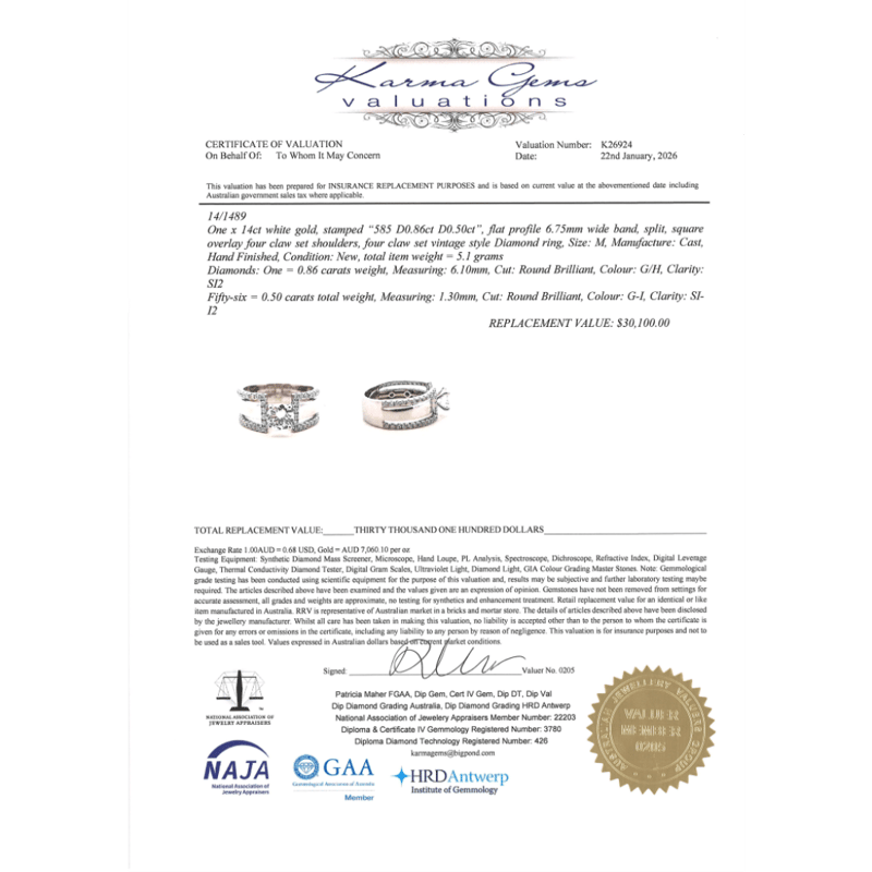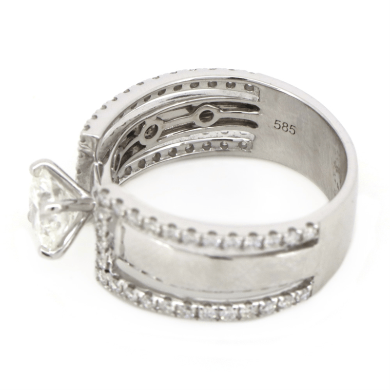 The Centre Features, One Round Brilliant Cut, Diamond (0.86Ct, G-H Colour, Si2 Clarity), 4 Claw Set. Decorating The Band Are, 56 Round Brilliant Cut, Diamonds (0.50Ct Tdw, G-I Colour, Si-I2 Clarity), 4 Claw Set. Ring Size M.