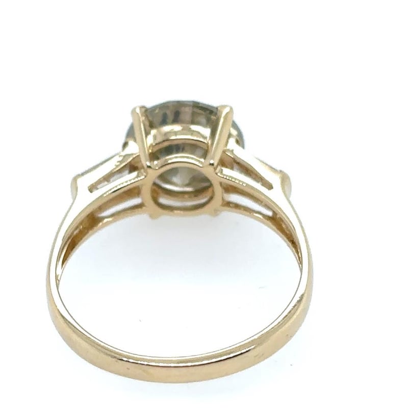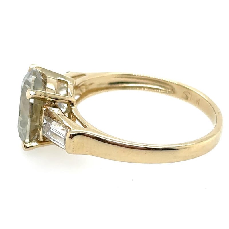 Featuring A Round Brilliant Cut Diamond, Claw Set, 3.05Ct In Weight (9.2 Mm), P1 In Clarity And Greenish Brownish Yellow In Colour. 2 Baguette Cut Diamonds, Bar Set, 0.46Ct In Total Combined Weight, Vs In Clarity And G In Colour.